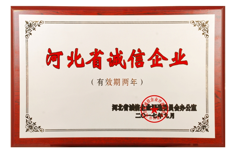 • 2018-2-3我公司獲“河北省誠信企業(yè)”榮譽稱號 執(zhí)行董事任本超獲“河北省企業(yè)誠信建設優(yōu)秀工作者”稱號